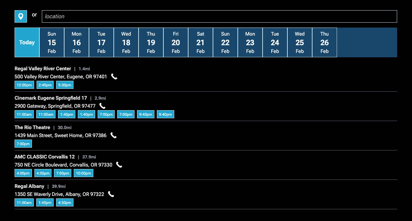 This area, if activated, displays the showtimes for the title.